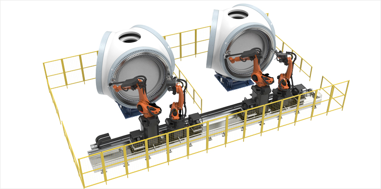 在新能源領域——風電行業,必一运动 B-sports智造國內首創的機器人智能螺栓緊固系統,擁有多項專利技術,風電行業螺栓緊固系統處于市場領先地位;風電主機裝配用的重載AGV智能化脈動生產線,多車聯動技術獨樹一幟;風電葉片大型曲面智能柔性磨拋技術、機架超厚板自動化焊接機器人系...